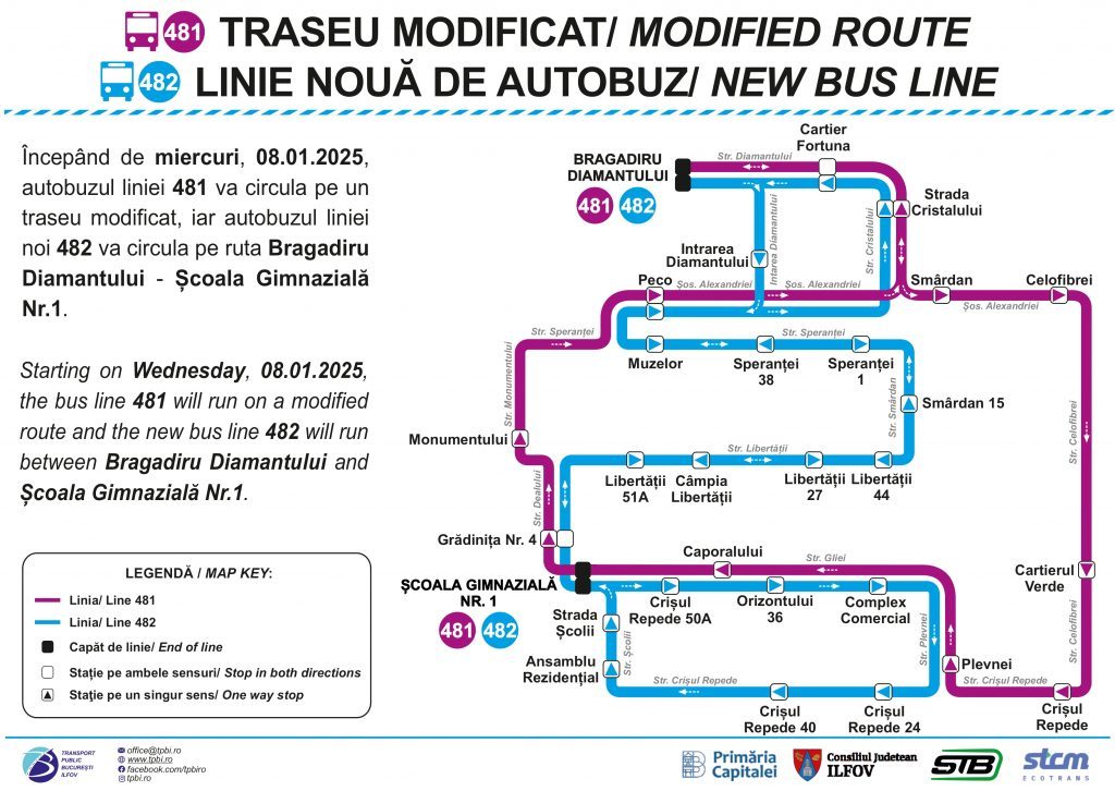 Tur: BRAGADIRU DIAMANTULUI – STR. DIAMANTULUI Retur: SCOALA GIMNAZIALA NR. 1 – STR. GLIEI